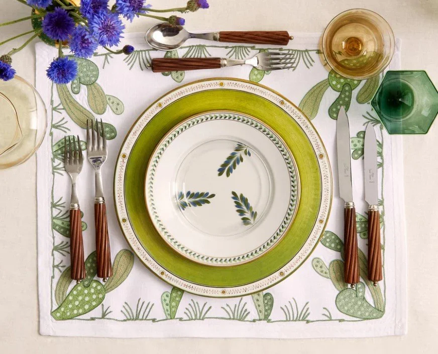 6 Summer Place Settings AERIN: Florentina Dinner Plates with Bamboo Flatware, Vittoria Napkins, and Ribbed Stemmed Glassware Pierrot Doremus (from Abask): Hand-Blown Glass Ice Cream Bowls (comes in pink, blue, orange, green) Hermes: Passifolia Dinnerware (from Kneen & Co.) Rebecca Udall: Elouis Dinnerware Collection with Rattan Charger and Tortoiseshell Classic Cutlery Abask: Monkeys Dinner Plates, Clara Bread Plates, Bamboo Cutlery, Cactus Placemats, Moser Red Wine Glasses, Venexia Small Tumblers GreenRow: Hand-Painted Floral Ceramic Dinnerware Collection accessories, contemporary, designer, Irwin Viner, Irwin Weiner, outdoorJay JohnsonJuly 22, 2024tabletop, summer, AERIN, Abask, Pierrot Doremus, ice cream bowls, hand-blown, dinner plates, cutlery, stemware, linen, placemats, wine glasses, tumblers, GreenRow, ceramic, Hermes, Rebecca Udall, PortugalComment Facebook0 Twitter LinkedIn0 Reddit Tumblr Pinterest0 0 Likes